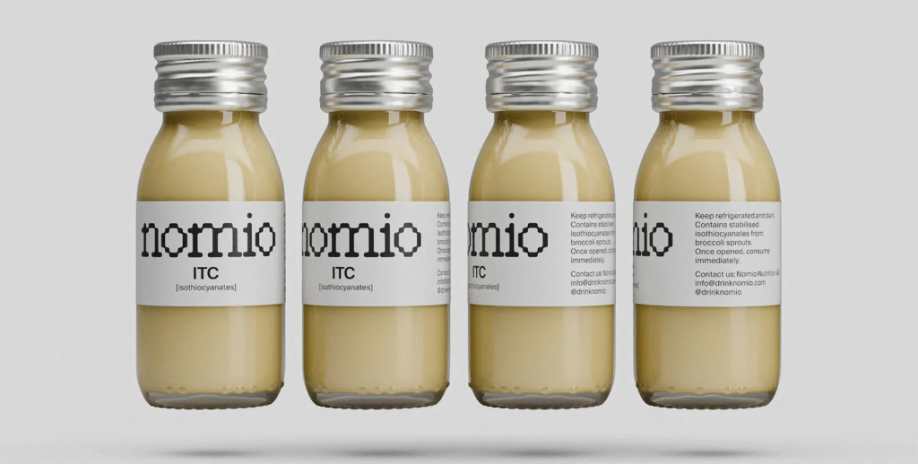 Nomio to produkt oparty na skoncentrowanych kiełkach brokułów, którego kluczowym składnikiem są izotiocyjaniany (ITC). Zdaniem producenta, łykając fiolkę z tym specyfikiem będziesz szybciej się regenerować, obniżysz poziom mleczanu we krwi oraz zmniejszysz stres oksydacyjny powstały na skutek ciężkiego treningu.